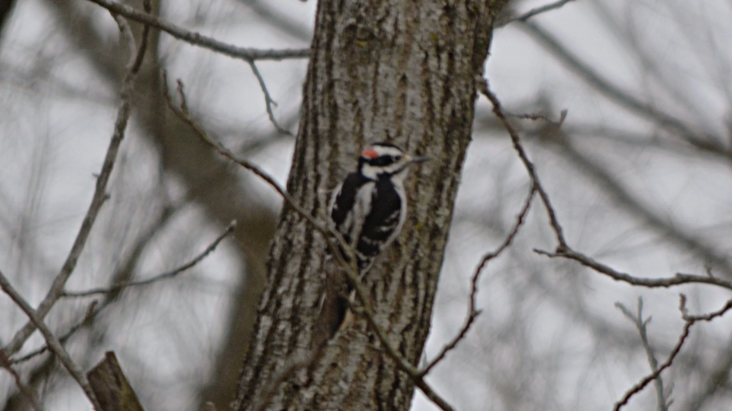 It was tough getting a good photo of this Downy Woodpecker. Teresa captured the best photo (1st shot), and mine was the second. They are not perfect, but it was good to see this guy.