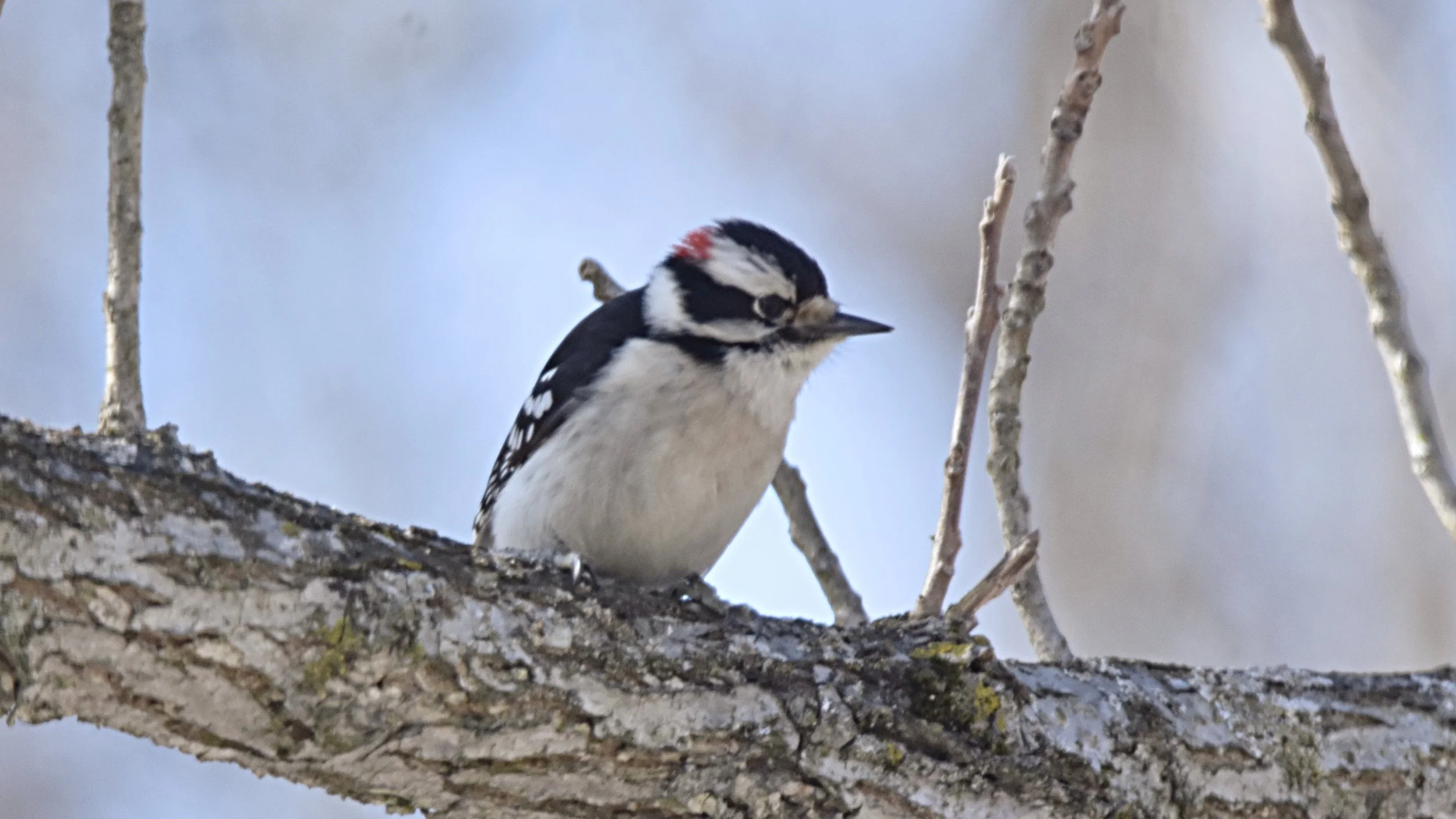 This is a male Downy Woodpecker. It is your turn: caption this photo:).
