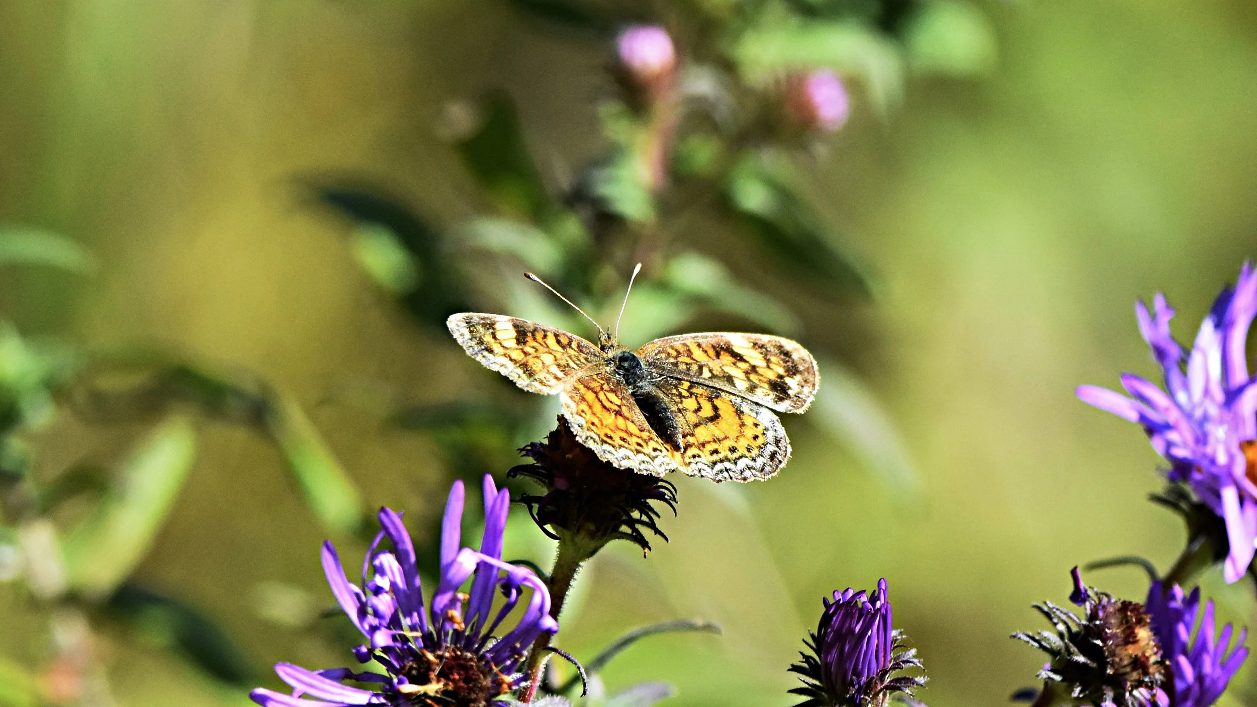 What a beautiful photo of a Pearl Crescent. The phooto is a little dark but but I really like the colors and depth.