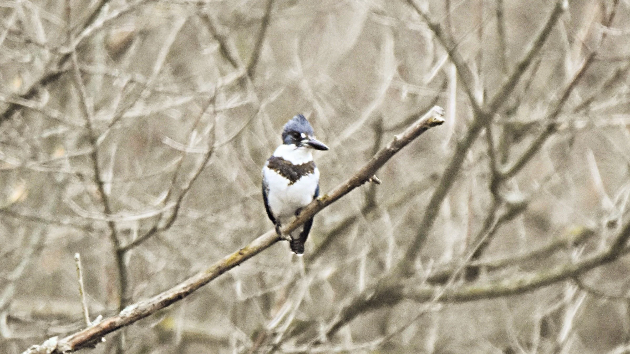 From my vantage point, the Belted Kingfisher appeared remarkably small and difficult to spot. I managed to capture a few photos before he abruptly leaped off the branch and plunged into the pond. I’m not certain what he caught, but he swiftly ascended to a different branch. I intended to take another photo to observe his catch, but before I could, he flew away.