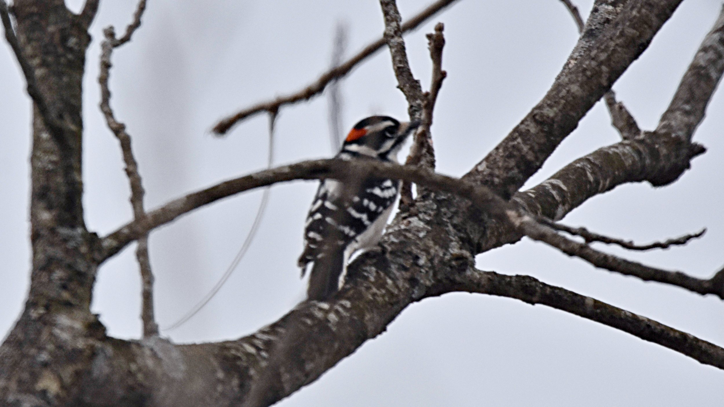 I just love the sound of a woodpecker .. yes the sound. It echos over the silence and you know it's there. This Downy Woodpecker was catching a snack.