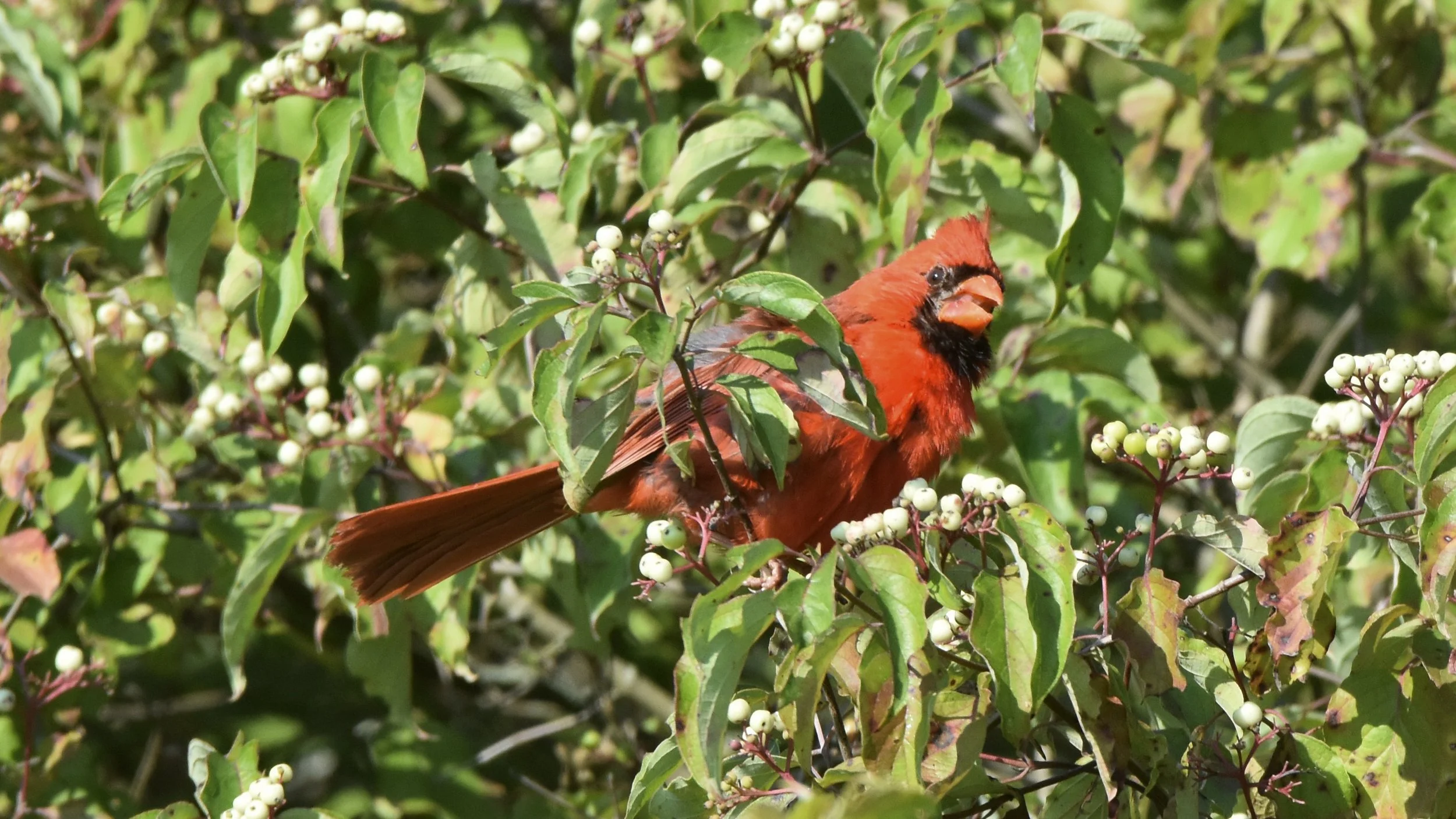 This Northern Cardinal waw playing games with me. He didn't move ... I even asked Teresa if she thought it was a real cardinal. After an eternity he moved his head.