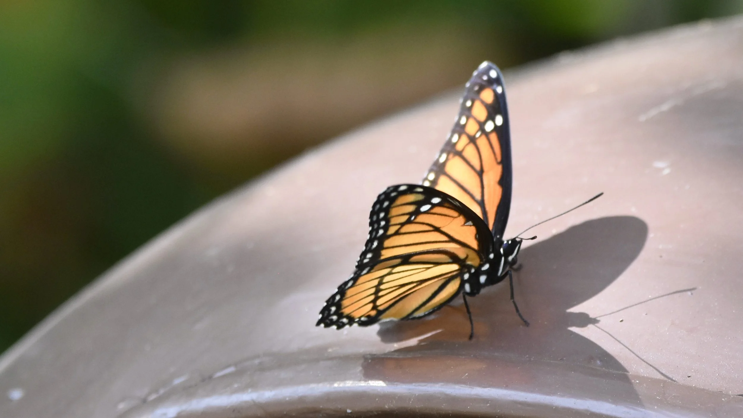 This one is a Viceroy. Yes, it is not a monarch. There was a couple of them but this is all I was able to get .. one viceroy on a trash can. 😂