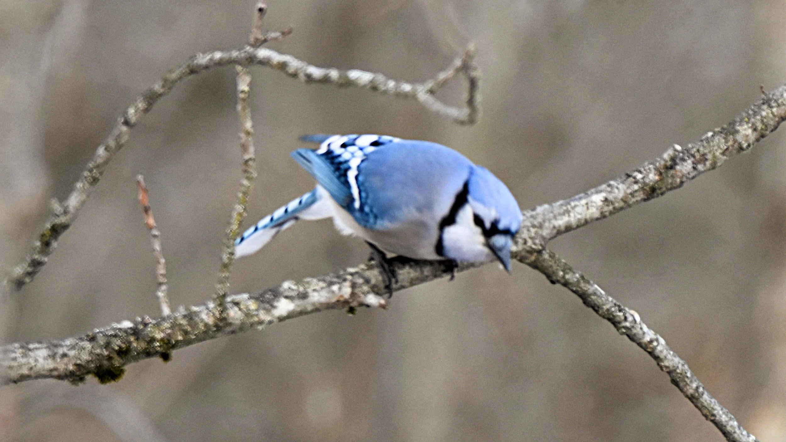 I had to laugh at this Blue Jay .. he was ploting a dive to get a snack. Other birds were enjoying some bird seed we put on the ground. The Jay was a little later but swopped in late to fill his belly.