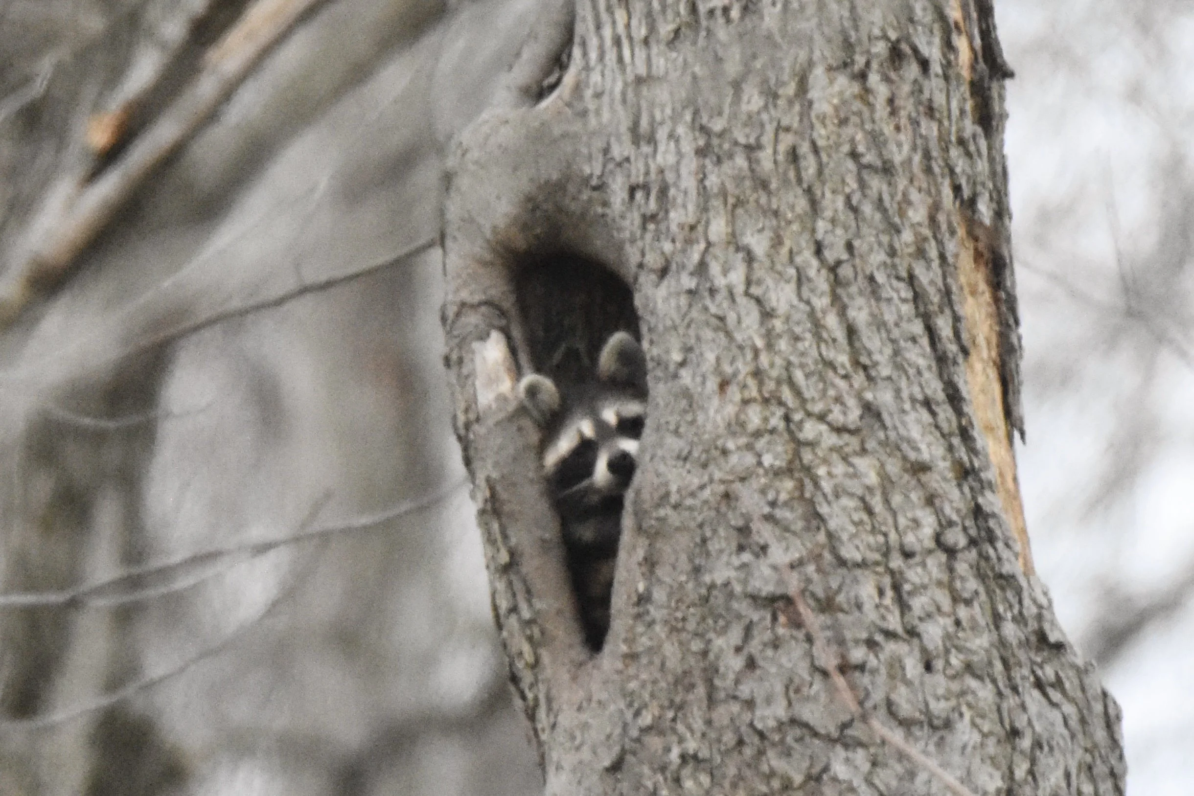 This has become a spring thing. It happened last year about this time and here we go again .. a young racoon in the tree. Too cute.