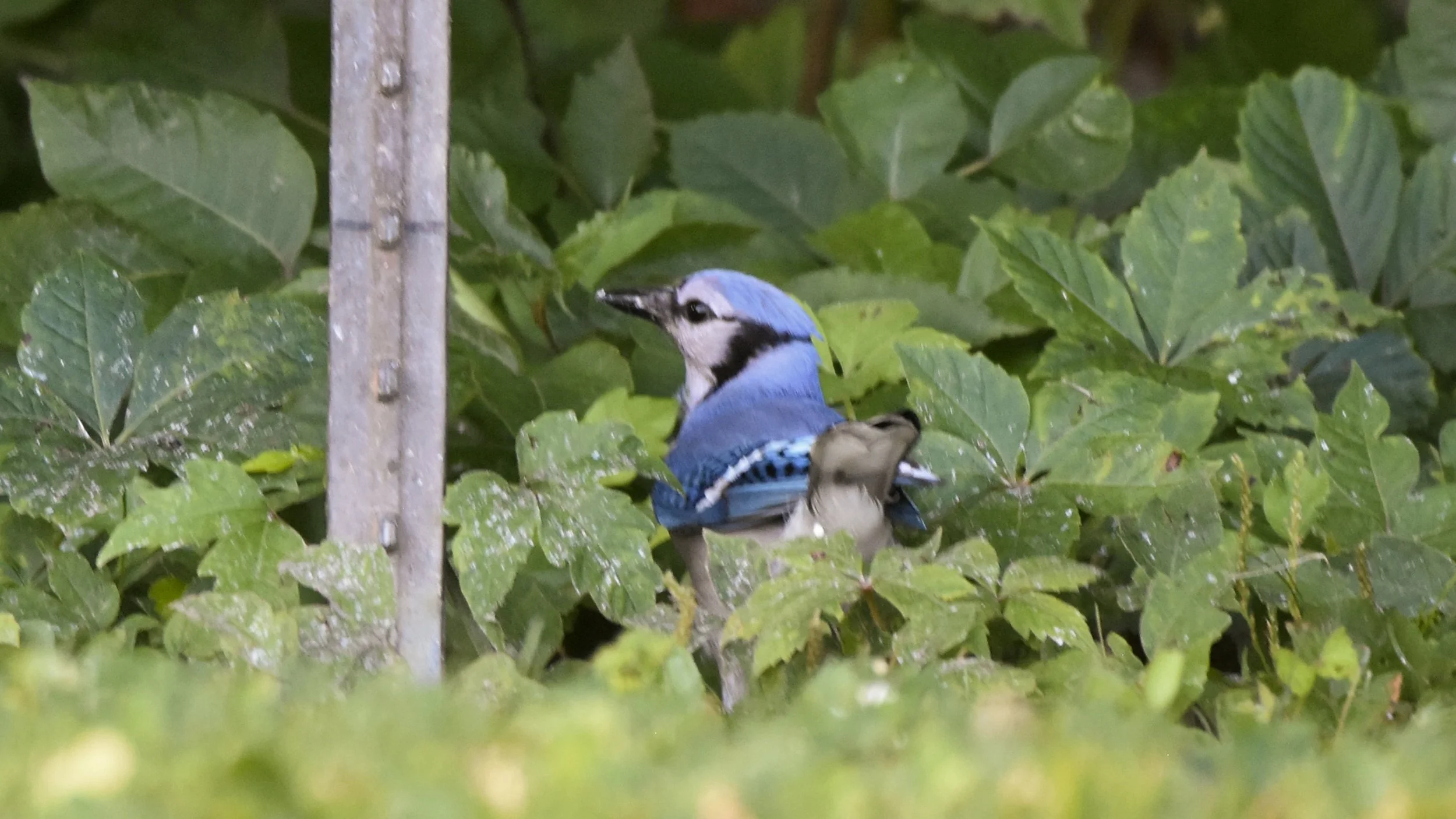 I can’t count how many Blue Jay photos we’ve missed recently. We hear them frequently and often see one, but we never manage to take a photo. This one finally gave me a shot. It’s not great, but it’s a start. This is common with all birds right now, but we’re determined to keep trying.