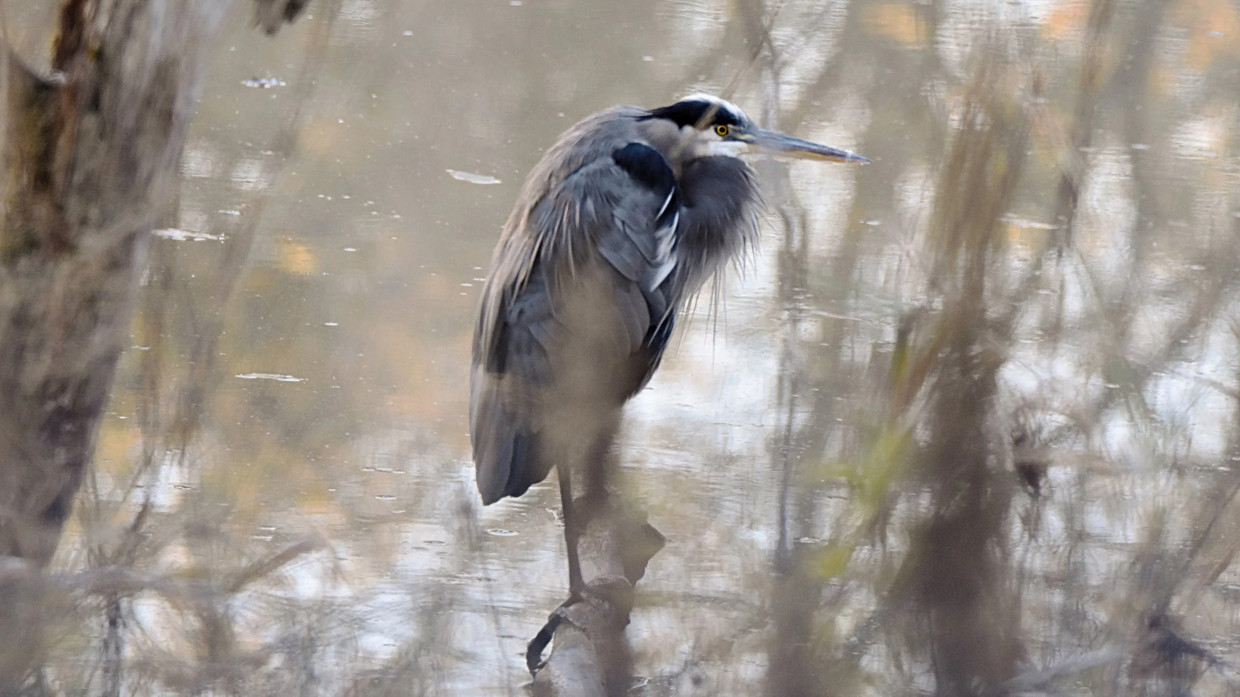 This is a unique photo. I love seeing a Great Blue Heron but this one was really close and his location made it a difficult photo. Even getting a focus on him was difficult. I love how it turned out.