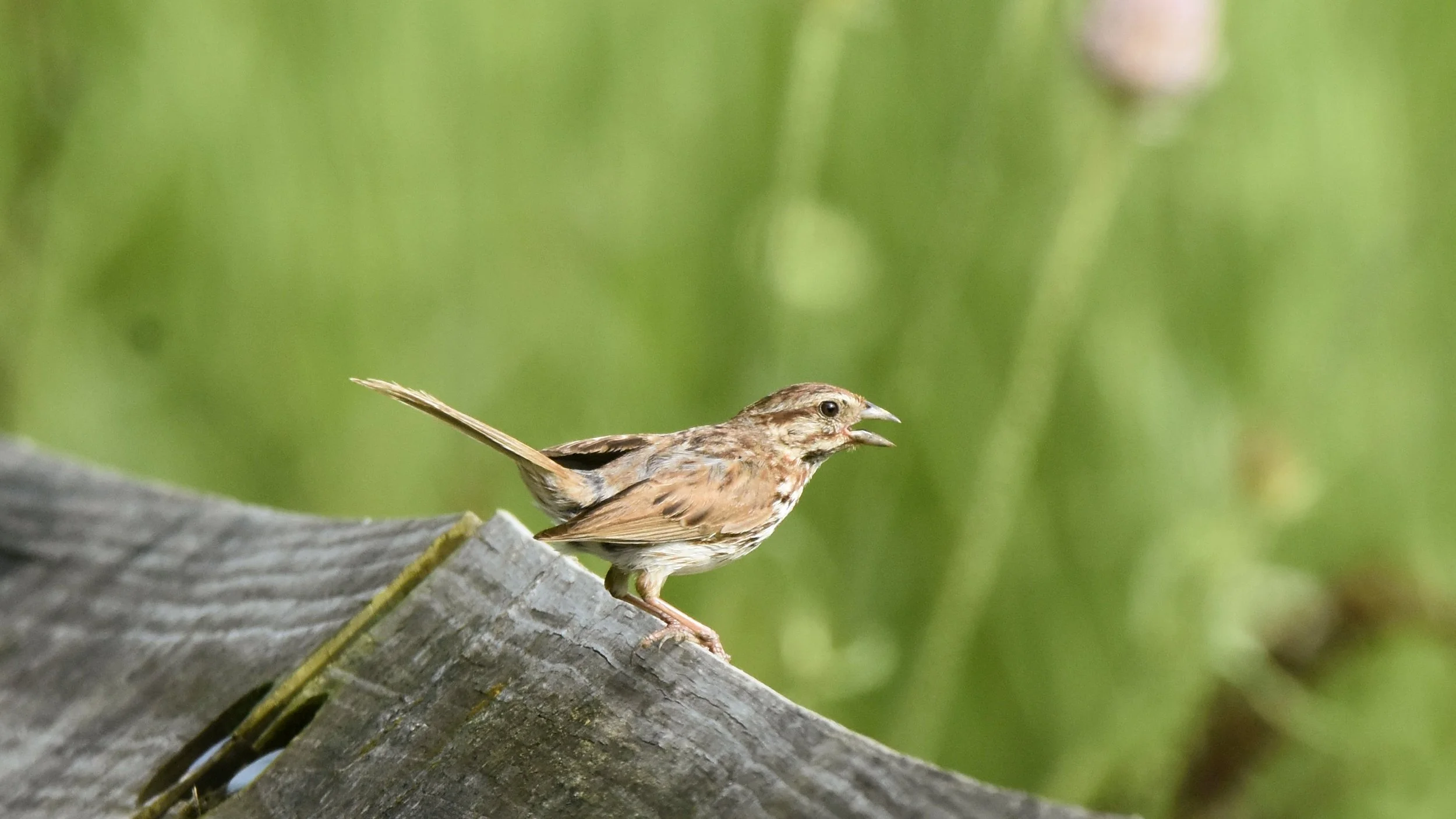 I love the tail of the Song Sparrow. It's not exactly true but I think their tale is unique for sparrows. I mean some other sparrows ave it but I love how it looks.